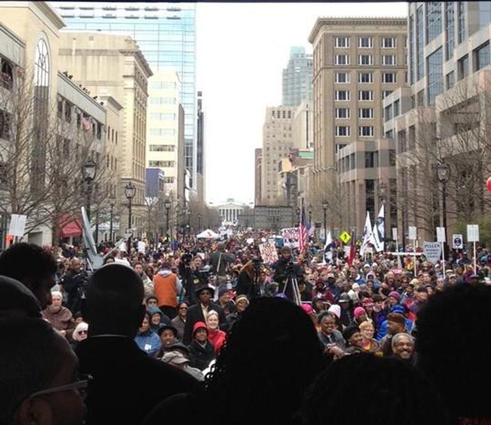 The march, also known as the 'Historic Thousands on Jones Street', or HKonJ, was organized by the NAACP and its NC president, the Rev. William J. Barber. The NAACP and Barber drew national attention last year for organizing the so-called Moral Monday demonstrations to protest "immoral" legislation enacted by the North Carolina Legislature.