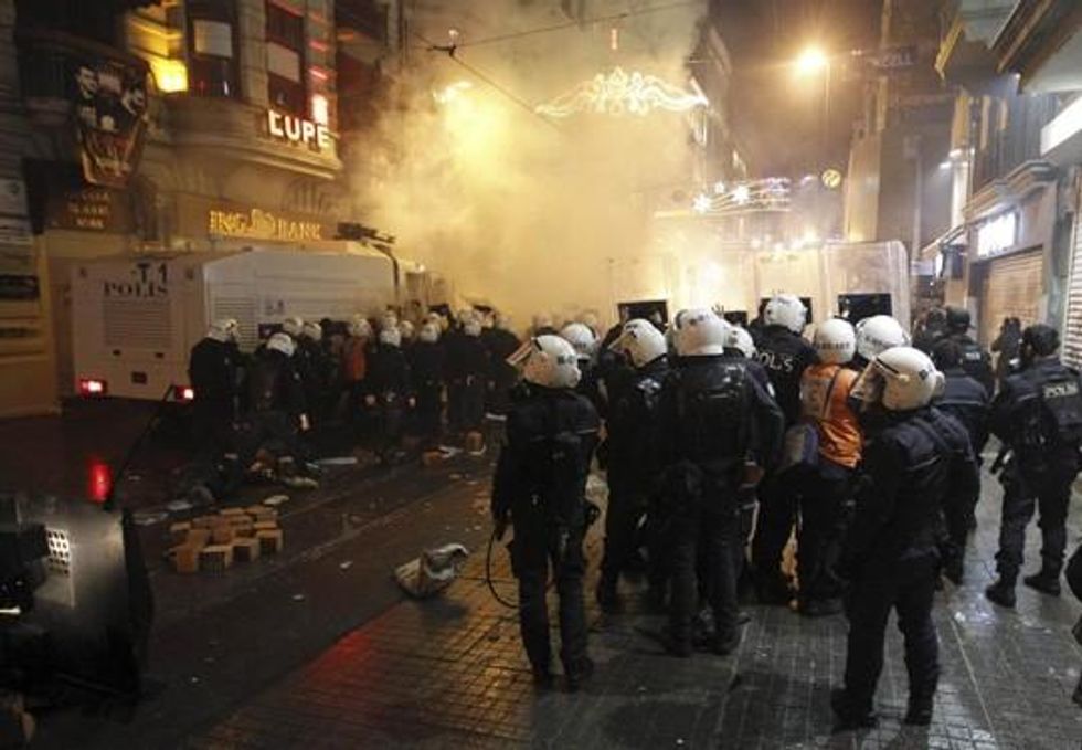 Turkish police fired volleys of tear gas and used water cannons to disperse large crowds of protesters Saturday rallying in central Istanbul against new "draconian" internet laws passed to stifle dissent and stop evidence of high-level corruption being seen online..