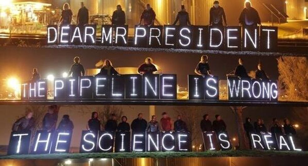 And Aly Johnson-Kurts, who is taking a gap year from Smith College to help fight the climate crisis, said: "As young people, the Keystone XL pipeline assures irreversible environmental destruction. We stand in solidarity with First Nations communities and other groups on the front lines who have been fighting Tar Sands development for years, and call on President Obama to reject this pipeline to prevent climate catastrophe from defining our future."