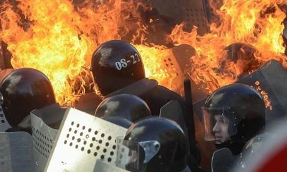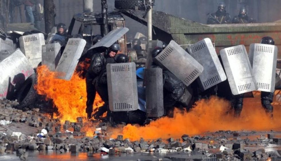 Clashes between anti-government protesters and state security forces exploded in Kiev on Tuesday with at least nine people reported killed as night fell in the Ukrainian capital amid fresh fears that a political stalemate has now escalated into chaotic mayhem with an unknown trajectory.