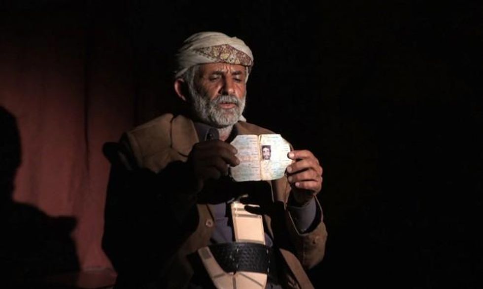 "Blood was everywhere, the bodies of the people who were killed and injured were scattered everywhere," testified Abdullah Muhammad al-Tisi, a local sheikh, who was injured and lost his son Ali Abdullah, a 36-year-old father of three, in the attack. "I saw the missile hit the car that was just behind the car driven by my son. I went there to check on my son. I found him tossed to the side. I turned him over and he was dead. He was struck in his face, neck, and chest. My son, Ali!"