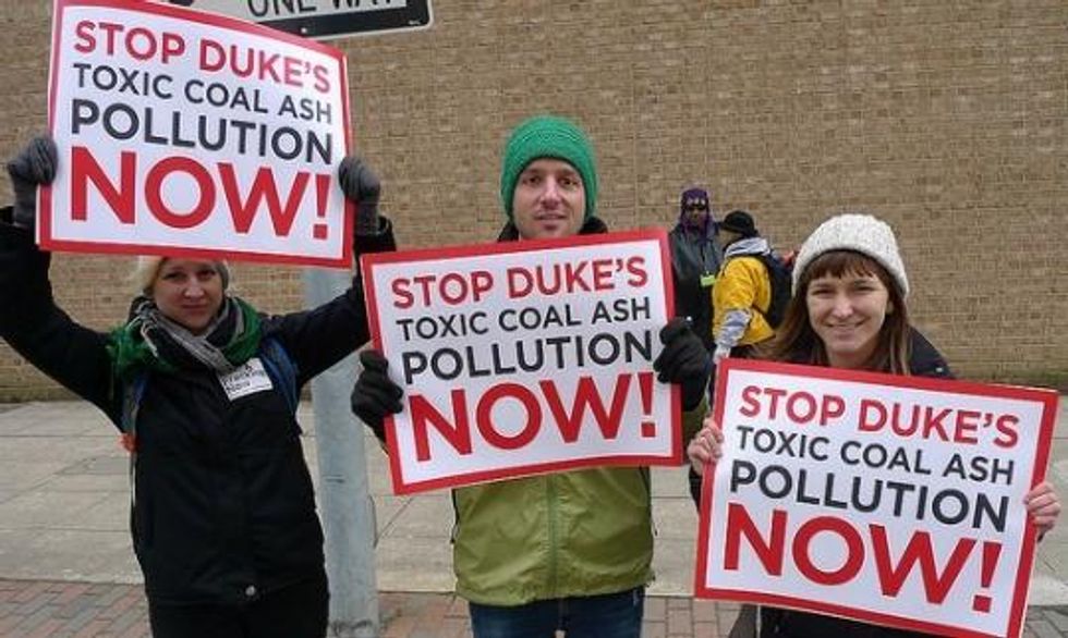 "No more coal ash in unlined ponds. No more leaks that seep into our drinking waters. No more excuses. No more hiding behind political allies. We are here to draw the line, Duke."