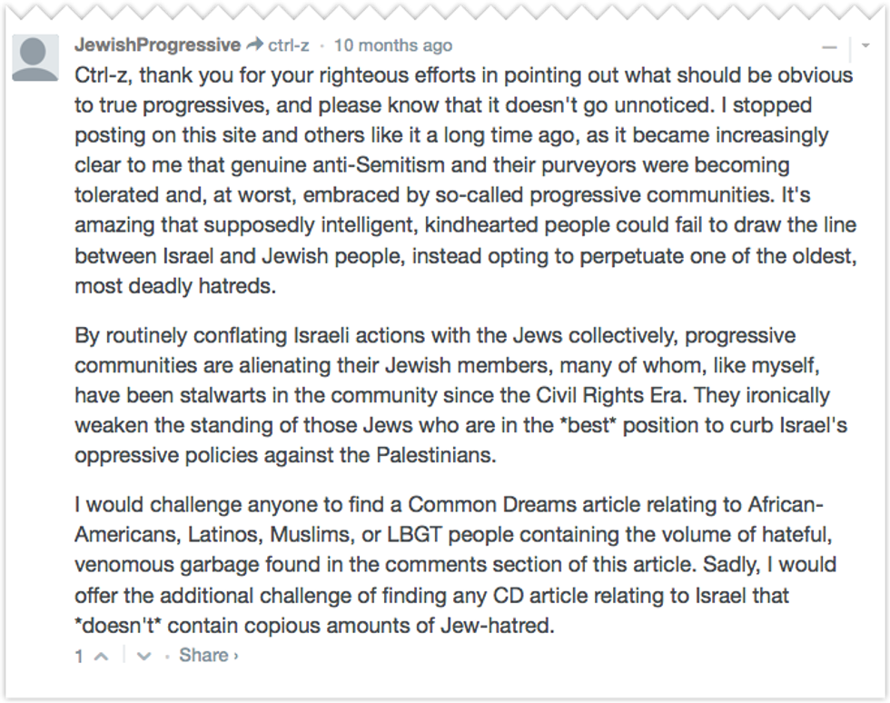Like many other news websites, Common Dreams has been plagued by inflammatory anti-Semitic comments following its stories. But on Common Dreams these posts have been so frequent and intense they have driven away donors from a nonprofit dependent on reader generosity.