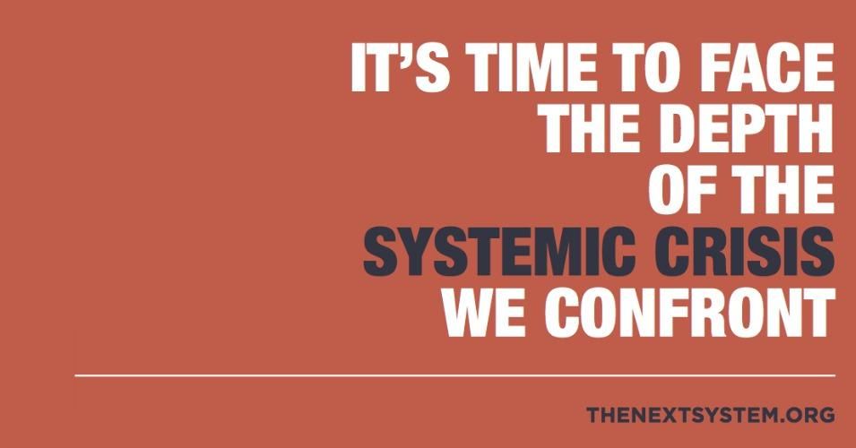 The newly launched project argues that 'large-scale system change is needed' to address humanity's deepest crises, but that cautious optimism is warranted because social, economic and political alternatives do exist. (Image: thenextsystem.org)