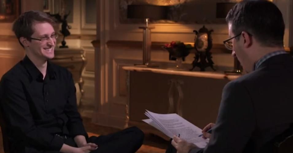 NSA whistleblower Edward Snowden sat down in Russia for an interview with comedian news anchor John Oliver. (Image: Screenshot/youtube)