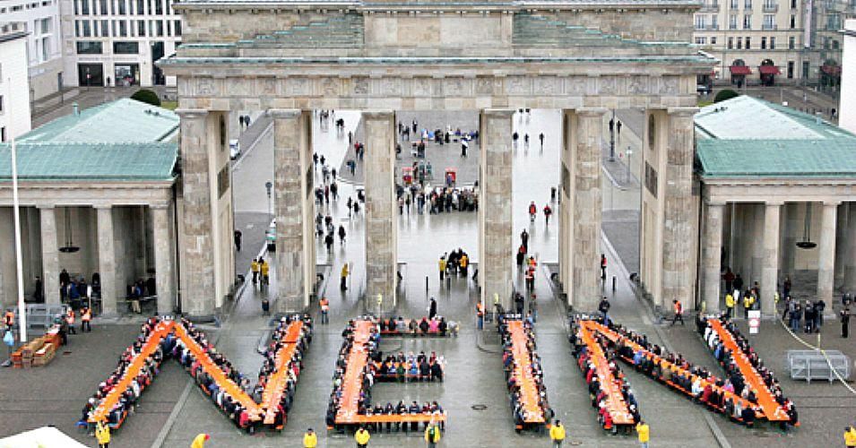 A protest against GMOs takes place outside of the Brandenburg Gate in Berlin. (Photo: Greenpeace Germany/flickr/cc)