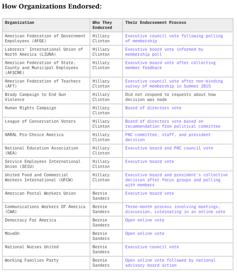 Bernie Sanders Gets Group Endorsements When Members Decide; Hillary Clinton When Leaders Decide