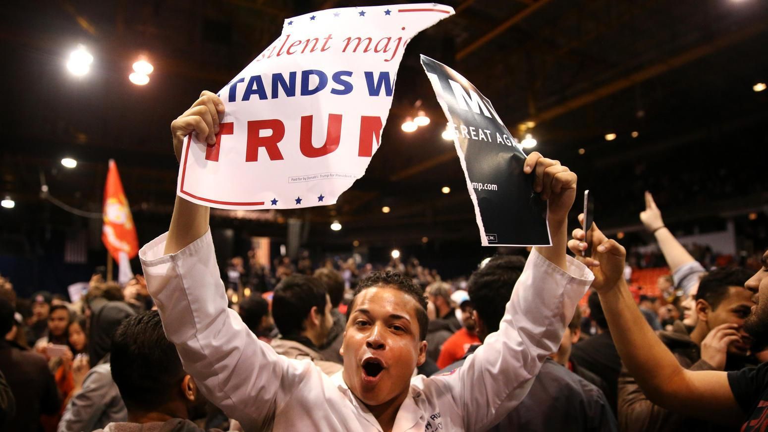 [When] it was announced that Trump wasn’t coming[...] the arena erupted into chaos.