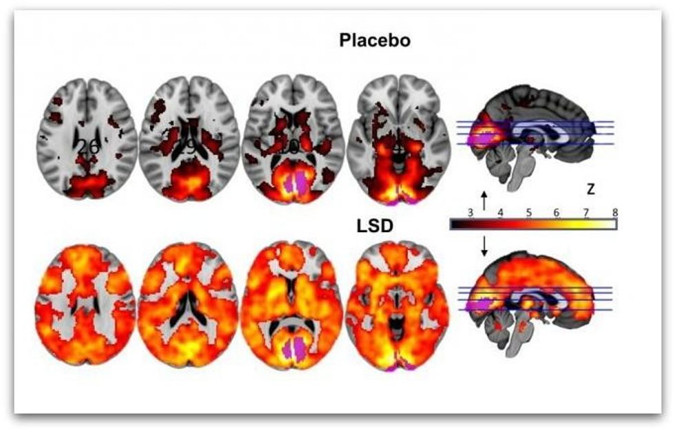 reveals what happens in the brain when people experience the complex visual hallucinations that are often associated with LSD state. They also shed light on the brain changes that underlie the profound altered state of consciousness the drug can produce.