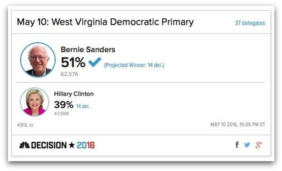With nearly half of precincts reporting, NBC News reports that Sanders had captured 51 percent of the vote compared to Clinton's 39 percent.