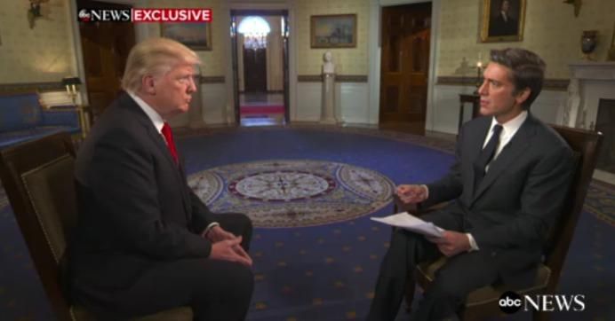 President Donald Trump sits with ABC News' David Muir for an interview in which he declared of waterboarding: "Absolutely I feel it works." (Screengrab from ABC News)