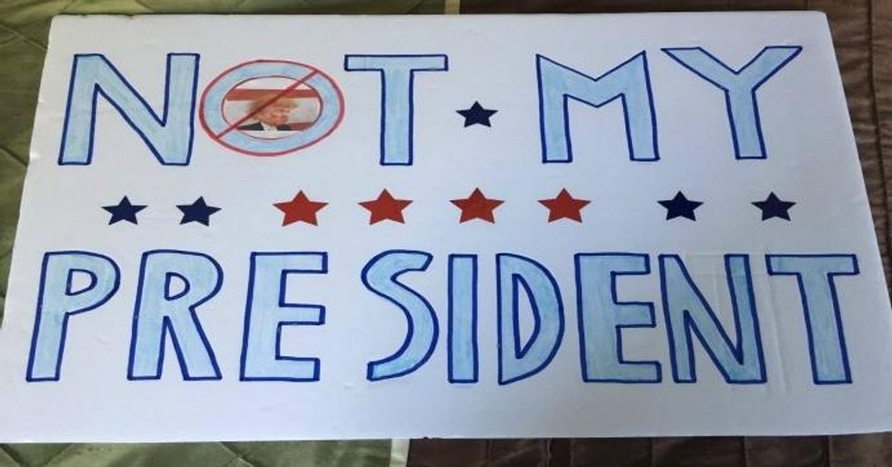 Nova Calise, a television production manager and one of the organizers of the New York event, told USA Today: "While we acknowledge that Donald Trump holds the current title, the policies he's trying to put in place are not the beliefs shared by the majority of the people. We do not accept Donald Trump as our president because he does not represent us."