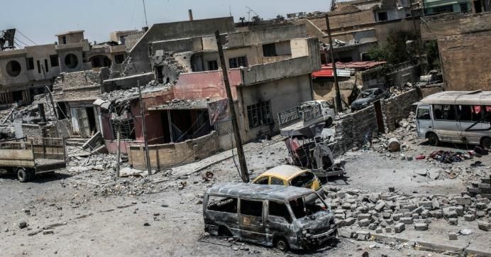 A destroyed street June 17, 2017 in al-Shifa, the last district of west Mosul under Islamic State control. (Photo: Martyn Aim/Getty Images)