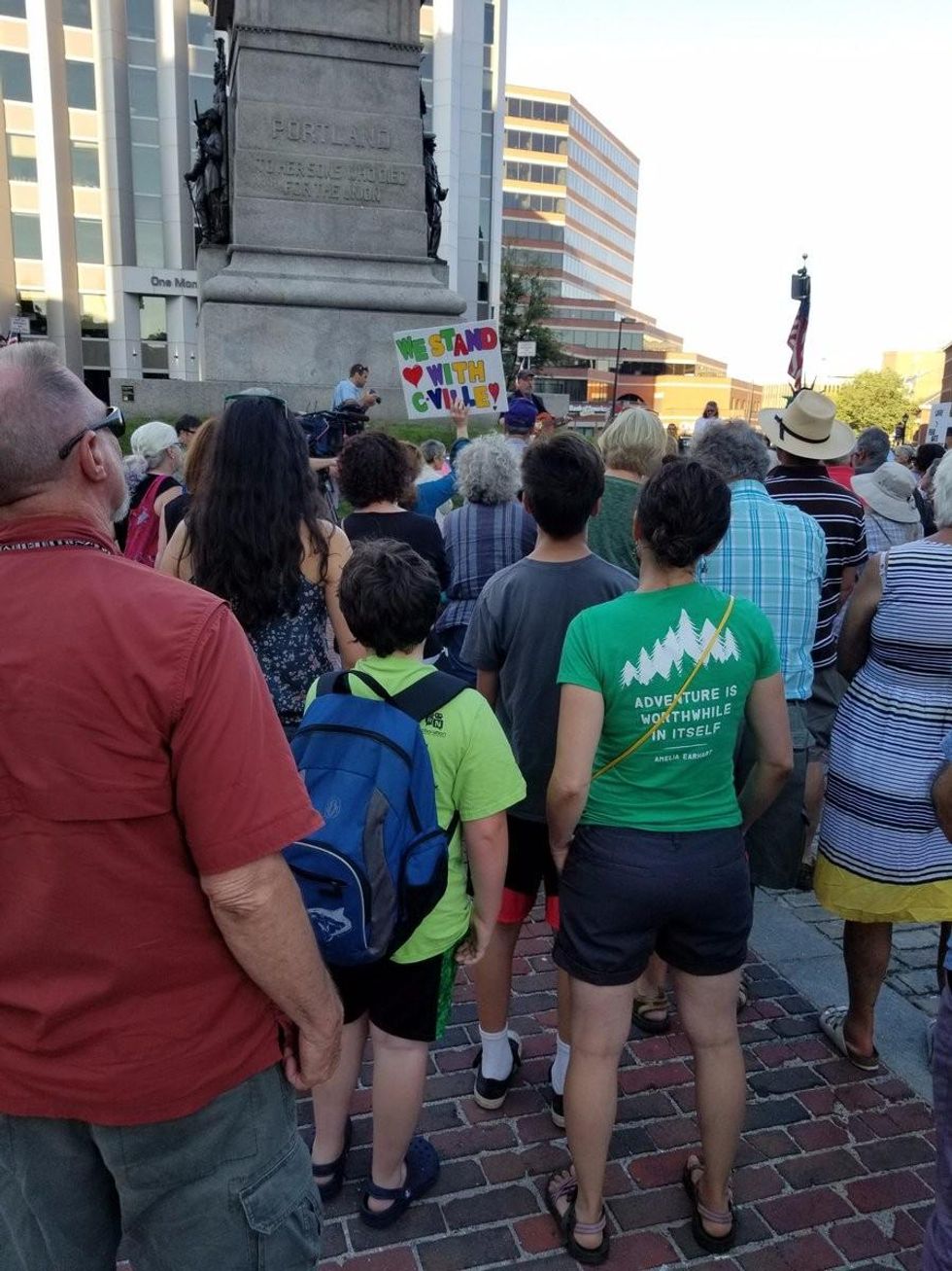 Among chants for democracy, these three link arms and sing of love in unison as Tucson marches. #Charlottesville #ThisIsUs @IndivisibleTeam pic.twitter.com/f7TV4ogv9G