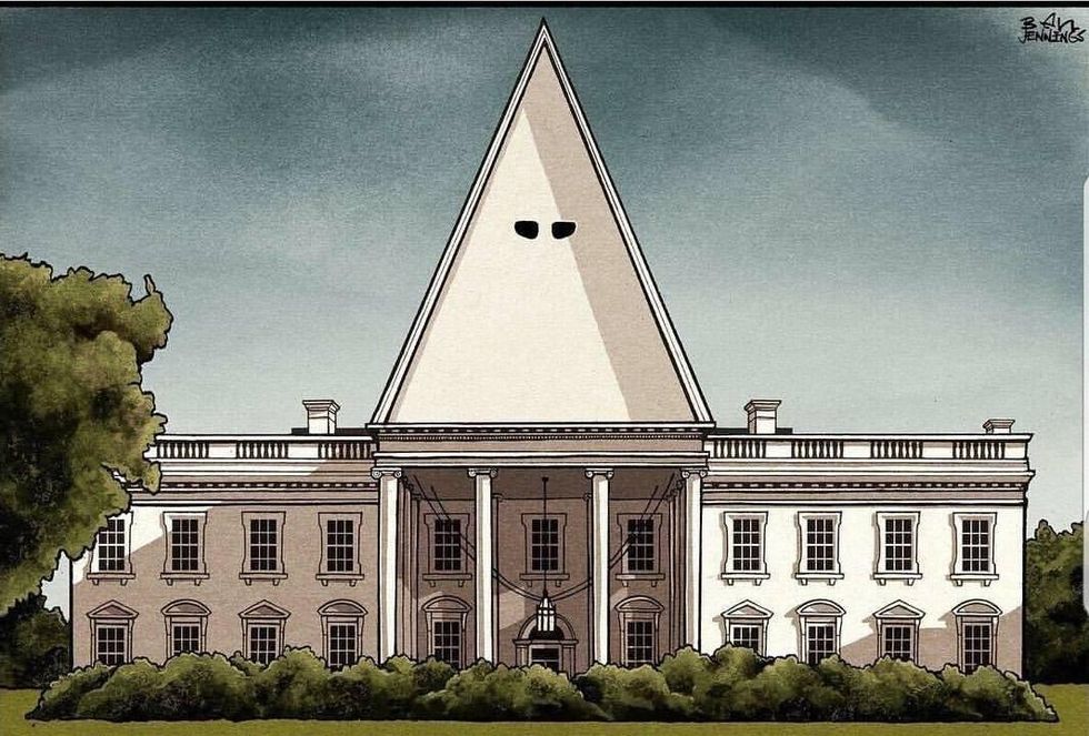 That cover emerged just hours after The Economist, with an illustration by Jon Berkeley, unveiled its cover featuring Trump and a KKK hood - this one shaped like a bullhorn.