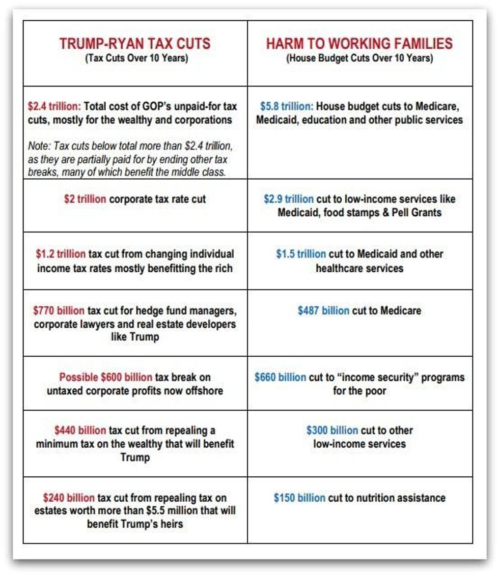 "These tax cuts for the wealthy and corporations will ultimately be paid for by cuts to Medicaid, Medicare, education, disability services, and other national priorities."