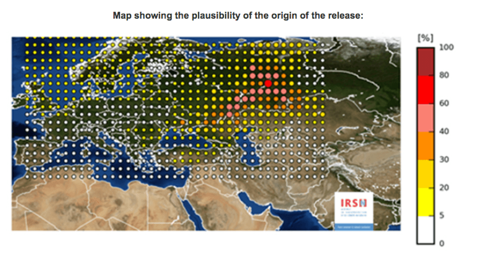 The precise point of release is also not known. IRSN suggested that "the most plausible zone of release lies between the Volga and the Urals," and published a map detailing its findings.