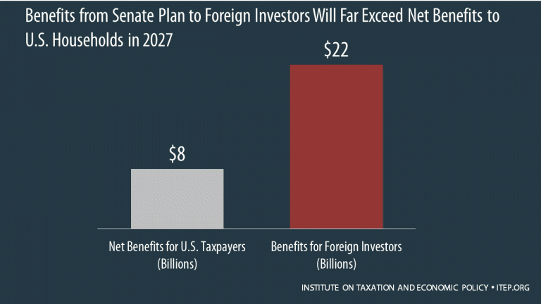 In its updated analysis, the non-partisan Institute for Taxation and Economic Policy (ITEP) found that while U.S. households would receive $8 billion in net benefits from the plan, wealthy overseas investors would capture an astonishing $22 billion.