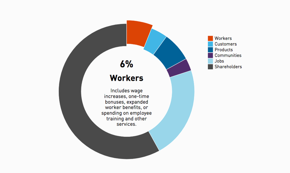 Bolstering JUST Capital's study was a New York Times analysis published on Monday, which found that rather than investing their tax windfalls, companies are using the extra cash to buy their own shares--a practice that further enriches already wealthy executives and investors but does little to nothing for workers or the overall economy.