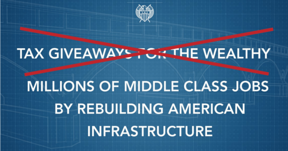 In contrast to Trump's proposal, which is built on the hope that just $200 billion in federal funds will spur $1.3 trillion in "investments" from states and private companies, the Democrats' blueprint (pdf) proposes using federal funds to rebuild roads, bridges, schools, and water infrastructure--then offsetting the costs by hiking the corporate tax rate to 25 percent, restoring the top marginal rate of 39.6 percent, and closing the carried interest loophole.
