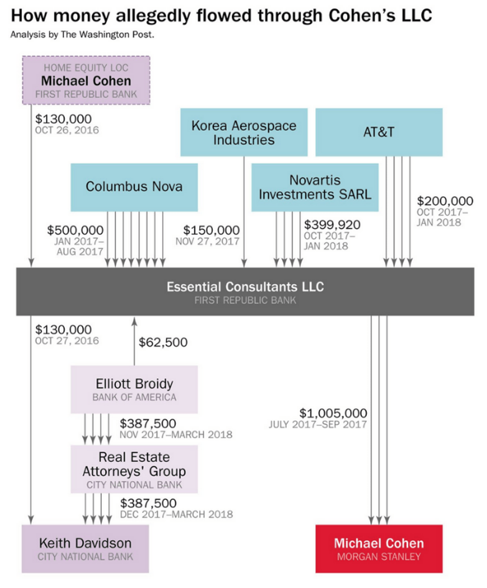 Attempting to track the newly revealed assortment of payments to Cohen's firm, the Washington Post published a helpful diagram that provides some semblance of clarity: