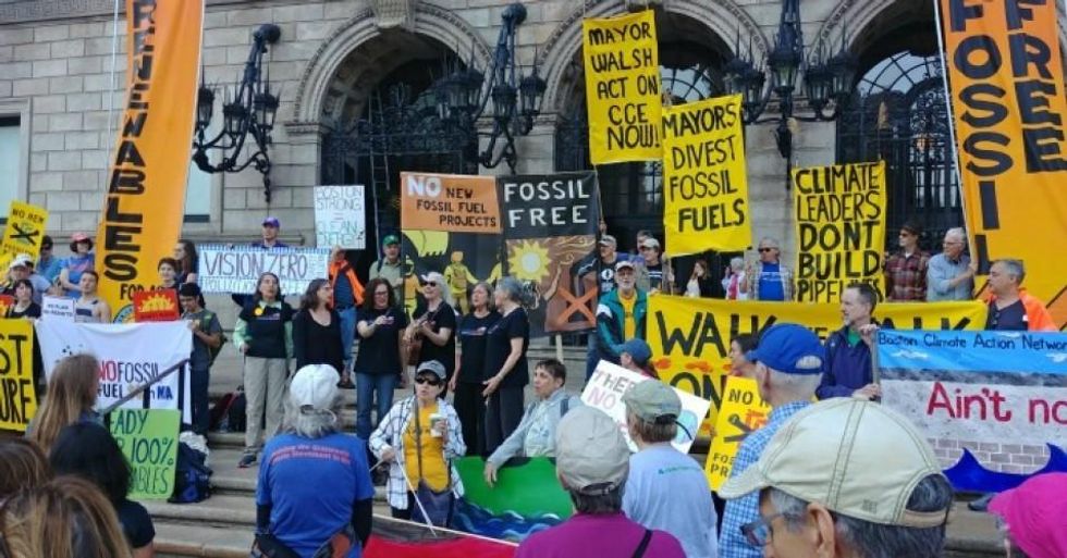 As the 86th annual U.S. Mayors Conference kicked off in Boston, Massachusetts on Friday, environmentalists took to the streets--and the Boston Harbor--to demand that local leaders "walk the talk" on climate and commit to bold action as the Trump administration caters to the whims of the fossil fuel industry.