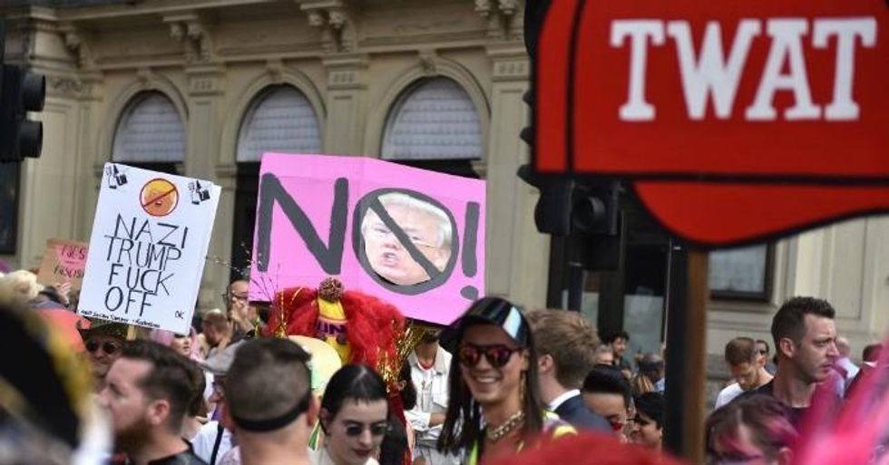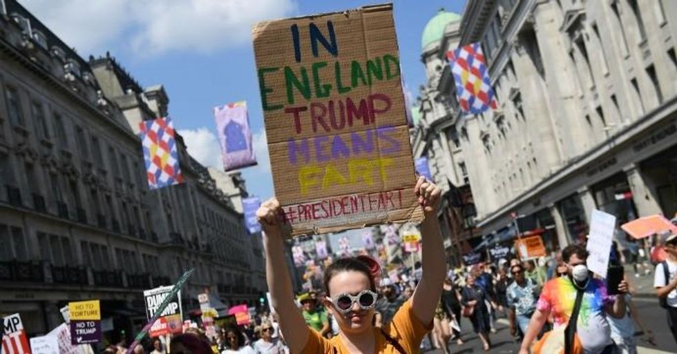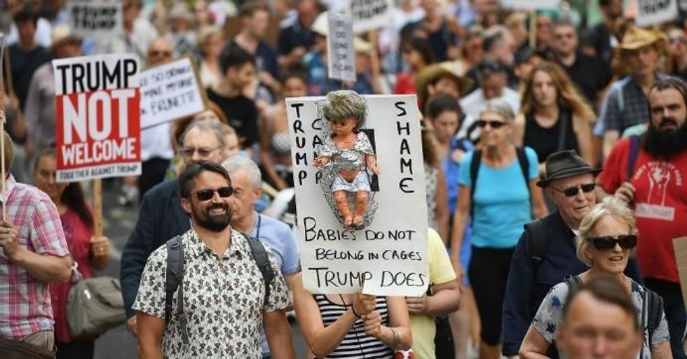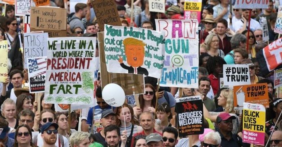 Protesters take part in a demonstration against U.S. President Donald Trump's visit to the U.K. in Trafalgar Square on July 13, 2018 in London. (Photo: Chris J Ratcliffe/Getty Images)