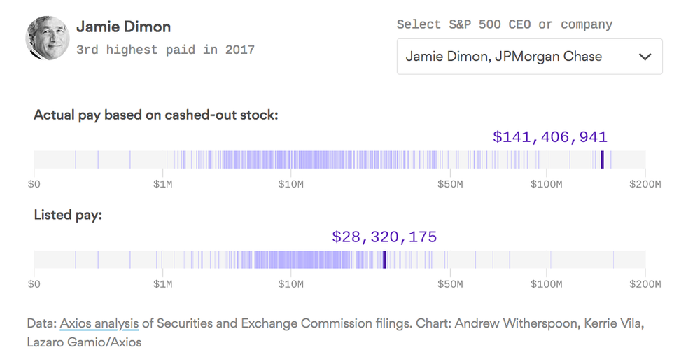"The CEOs running S&P 500 companies cumulatively took home $10 billion in 2017, an amount that is 44 percent higher than what is usually reported," notes Axios's Bob Herman. "The big reason: CEOs cashing in their stock."