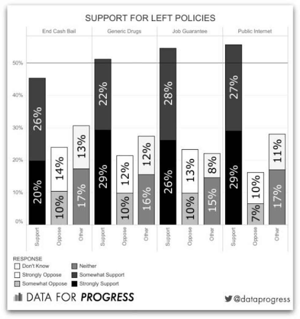 As the corporate media and centrist Democrats continue fearmongering over the alleged pitfalls of running on a bold left-wing platform in the 2018 midterms and beyond, new polling data released Wednesday shows that--contrary to what elite pundits suggest--"unabashedly left" policies are "incredibly popular" among the American electorate.