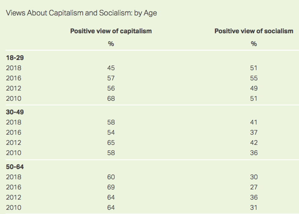 "People seem excited about this poll," noted The New Republic's Sarah Jones in a tweet on Monday. "I'd just add that it also reveals a need for democratic socialists to educate voters. The decline in support for capitalism didn't correlate to increased support for socialism overall."