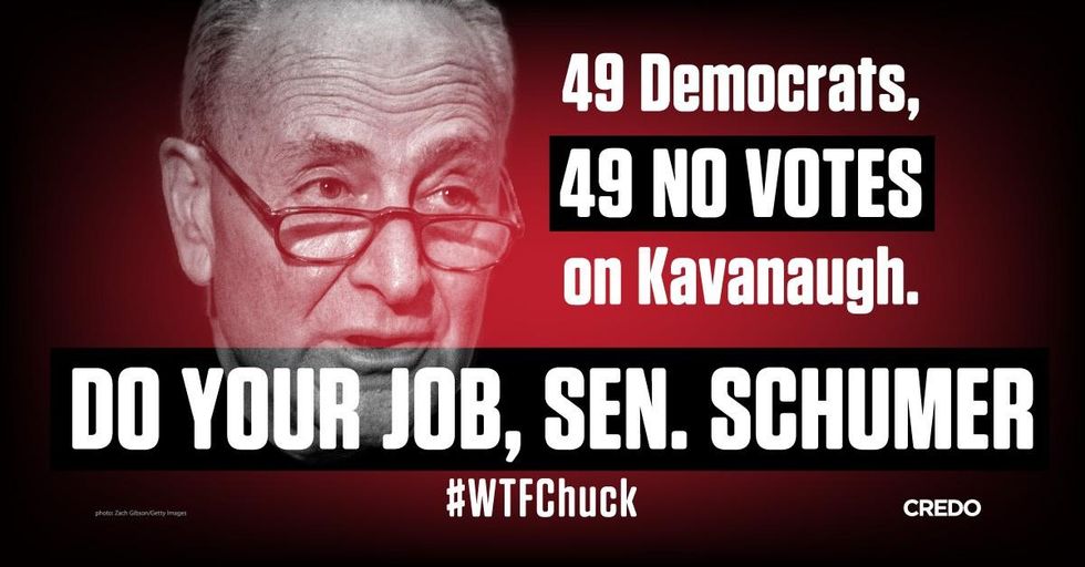 Pressuring Schumer to "do his job"--instead of helping his Republican counterparts ram through right-wing judges, as he did just last week--CREDO Action is planning to circulate a mobile billboard around Capitol Hill throughout the week. CREDO said in a statement that the billboard will drive repeatedly around the Hart Senate Office Building, the U.S. Capitol Building, and the U.S. Supreme Court until late Thursday afternoon.