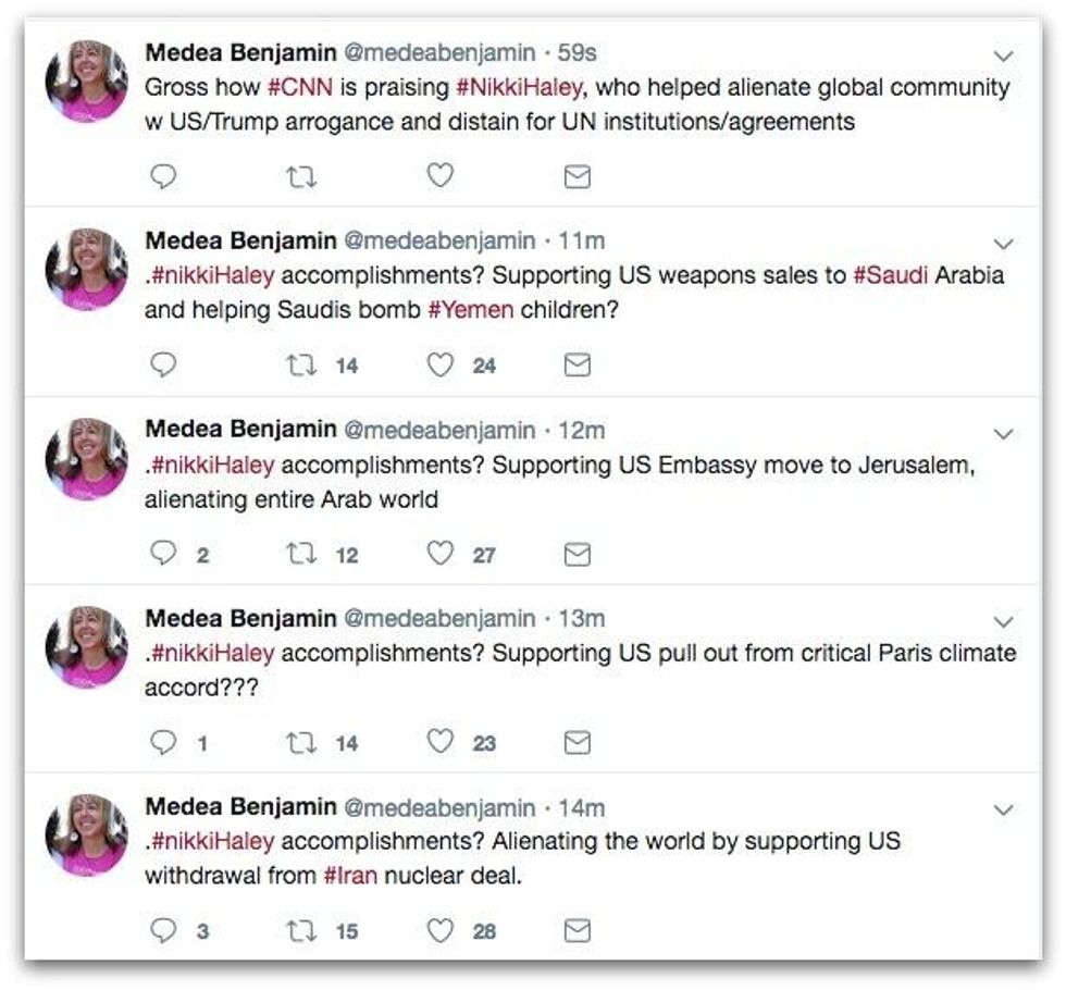 Blasting CNN for whitewashing the record, Medea Benjamin of CodePink didn't have a hard time cataloging some of Haley's most deplorable accomplishments while at the UN: