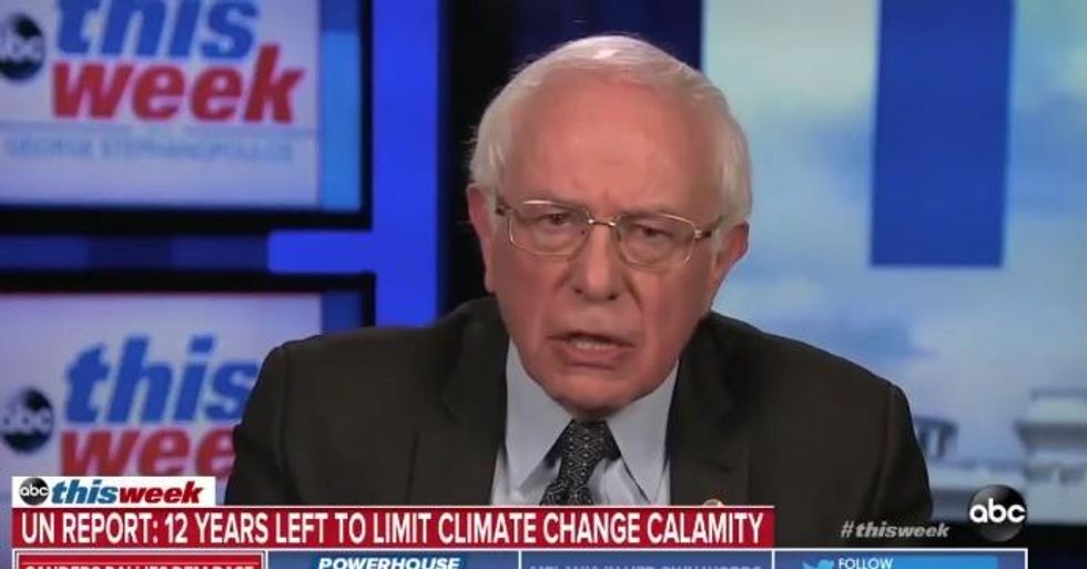 Appearing on ABC's "This Week" on Sunday just moments after President Donald Trump's chief economic adviser and noted Wall Street stooge Larry Kudlow dismissed a new United Nations climate report showing that the world must cut carbon emissions in half by 2030 to avert global catastrophe, Sen. Bernie Sanders (I-Vt.) denounced the White House for its "dangerous" rejection of climate science and slammed Trump for working hand-in-hand with Big Oil to make "a bad situation worse."