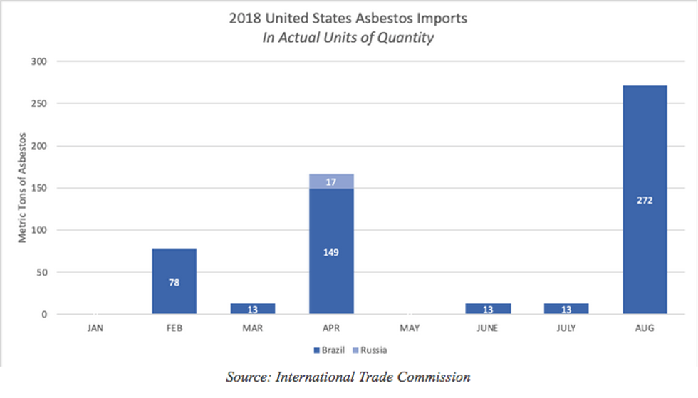 As President Donald Trump's industry-friendly Environmental Protection Agency (EPA) takes steps to loosen restrictions on the commercial use of asbestos--which is known to cause cancer and lung disease--an analysis of federal data published Tuesday found that asbestos imports to the U.S. surged by nearly 2,000 percent between July and August of this year.