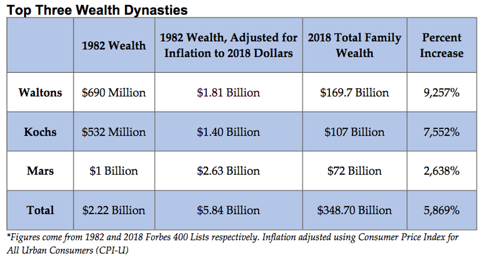 As millions of American workers and households find themselves in an increasingly precarious economic position--unable, for instance, to afford a $400 emergency payment--these dynastic families have seen their already staggering wealth grow thousands of percentage points over the past three decades, contributing to the growing gulf between the ultra-rich and everyone else and giving a few billionaires disproportionate power to shape public policy.