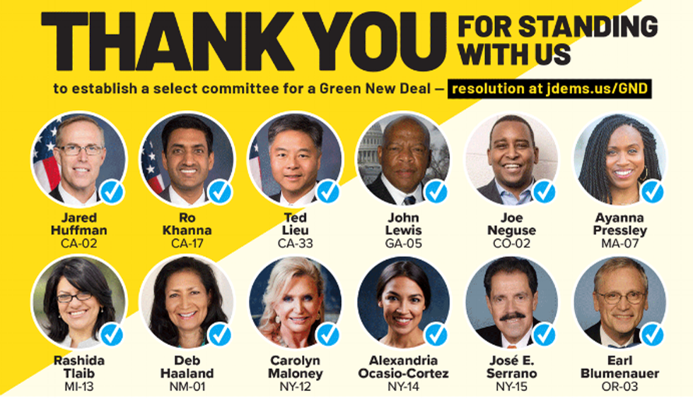 Additionally, environmentalists and progressive lawmakers have pushed Democrats--who will control the House in the next Congress--to form a Green New Deal Select Committee and make Rep.-elect Alexandria Ocasio-Cortez the chair.