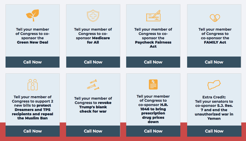 "Whether an in-person district office visit, a town hall, or a media event, showing up in person during recess is key to making our movement's voice heard," Indivisible said. "It's critical that we show up and hold [members of Congress] accountable to move legislation that sets the tone for the rest of 2019 and beyond, from the Green New Deal and Medicare for All to the Dream Act, protections for [Temporary Protected Status] holders, and repeal of the Muslim ban."