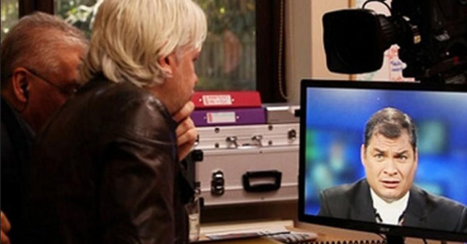 Wikileaks founder and publisher Julian Assange talking with then President of Ecuador Rafael Correa via video stream in 2012. (Photo: Wikileaks)