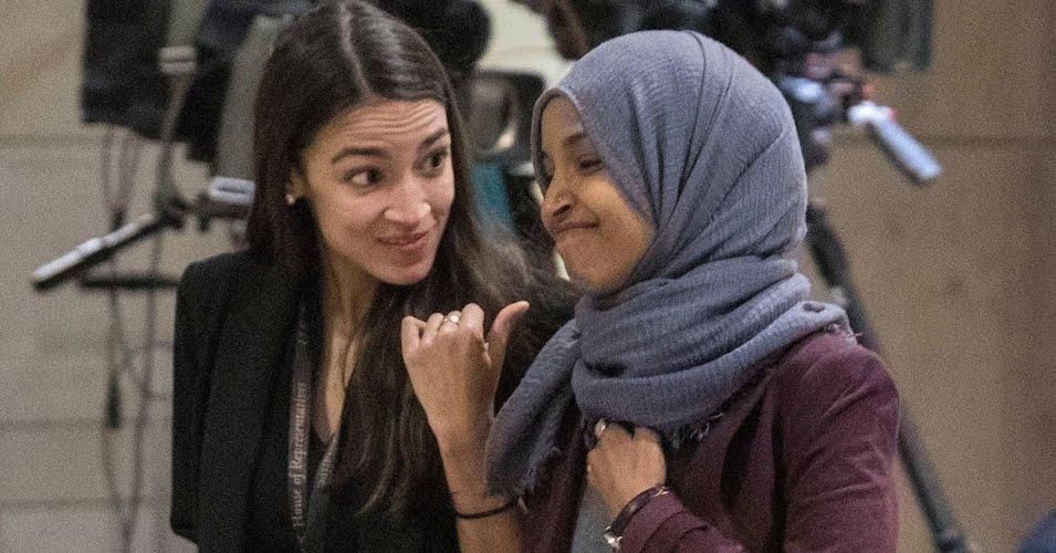 Reps. Alexandria Ocasio-Cortez and Ilhan Omar share a moment.