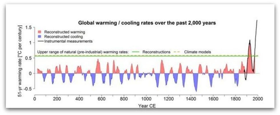 "This provides strong evidence that anthropogenic global warming is not only unparalleled in terms of absolute temperatures," said the scientists, "but also unprecedented in spatial consistency within the context of the past 2,000 years."