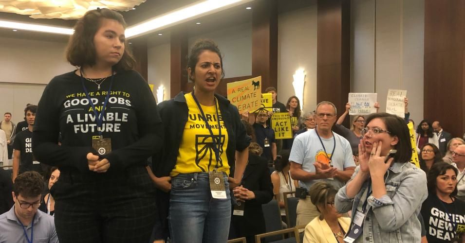 Members of the youth-led Sunrise Movement protested at the Democratic National Committee's summer meeting after the Resolutions Committee voted against holding a climate-specific 2020 debate. (Photo: Steve Rhodes)