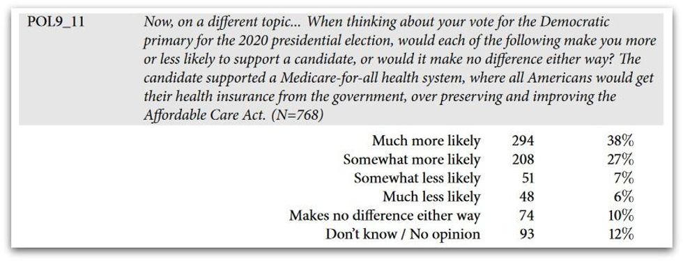 "The survey suggests a level of public support for single-payer health care that could take some sting out of Republicans' plans to make Medicare for All a four-letter word they can wield against Democrats up and down the ballot in 2020," Politico reported.