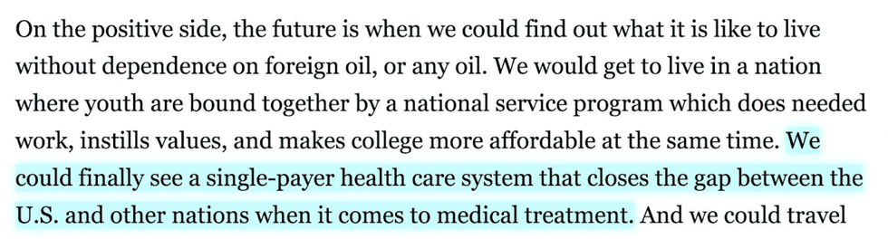 4/1/2019. Buttigieg spoke in glowing terms about Medicare for All and called the ACA a "conservative tweak" during a podcast interview with Ezra Klein. "By the Obama years, we're doing a basically conservative tweak to our healthcare system...cooked up in the Heritage Foundation and piloted by a Republican governor...Single-payer, which is very much a compromise position between nationalized medicine and fully private payer and provider...that's the middle ground. Only now are we even beginning to talk about it as something Democrats can embrace."