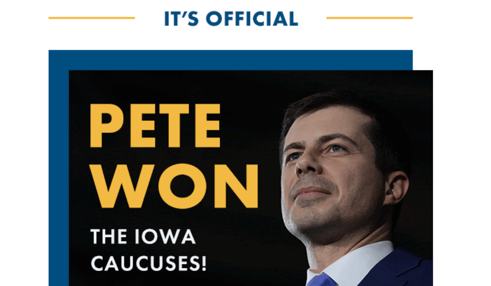 "Sen. Sanders clearly had a great night, too, and I congratulate him and his supporters," said Buttigieg, who later sent an email to supporters proclaiming that he "officially won the Iowa caucuses."