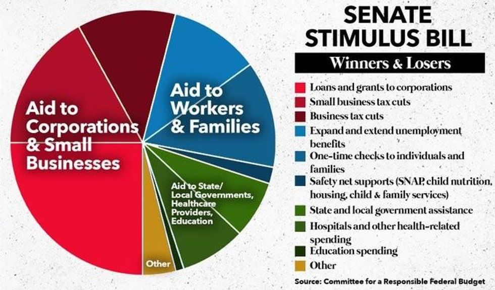 Even as the Senate-passed coronavirus relief bill moves toward likely passage by the Democratic-controlled U.S. House of Representatives as early as Friday, progressives Thursday continued to raise their voices against--and urged lawmakers to stop--what they say is a massive corporate giveaway contained in the legislative package.