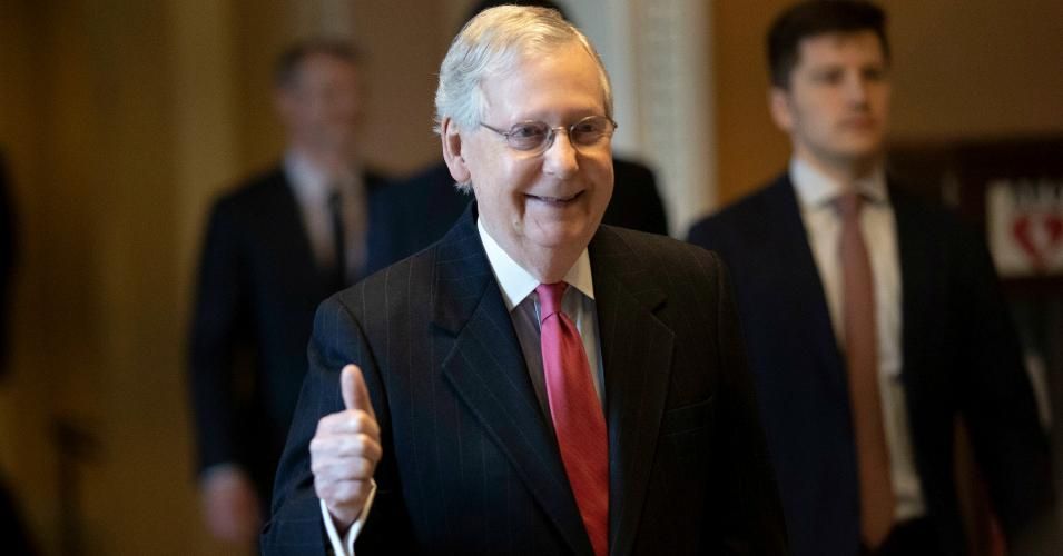 Senate Majority Leader Mitch McConnell (R-Ky.) gives a thumbs up sign after speaking on the floor of the U.S. Senate on March 25, 2020 in Washington, D.C. (Photo: Win McNamee/Getty Images)
