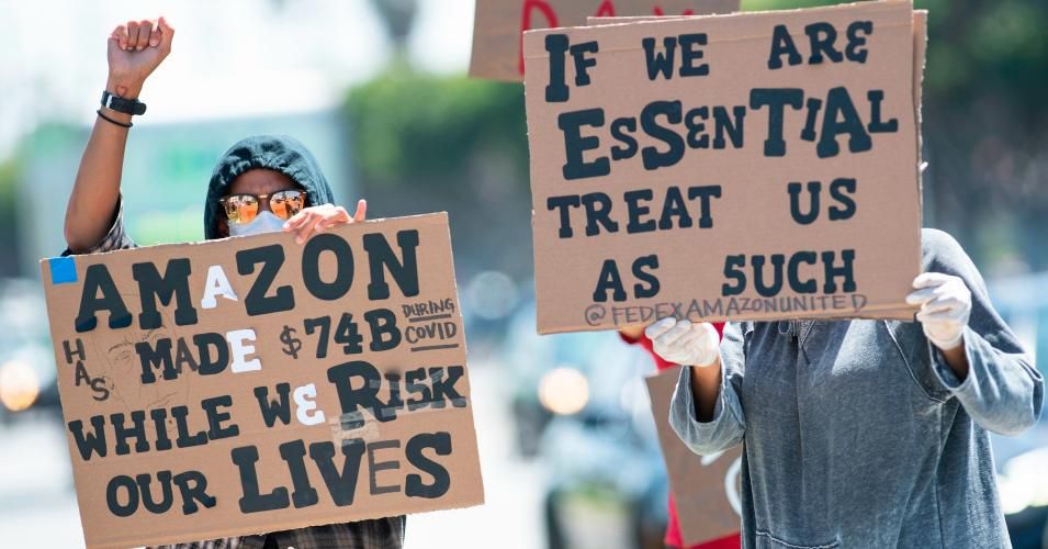Workers protest Amazon's failure to provide adequate protections in the workplace on May 1, 2020 in Hawthorne, California. (Photo: Valerie Macon/AFP via Getty Images)