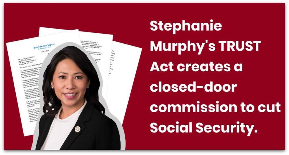 A mock-up of the first billboard Social Security Works is planning to run against Florida Rep. Stephanie Murphy. (Image: Social Security Works)