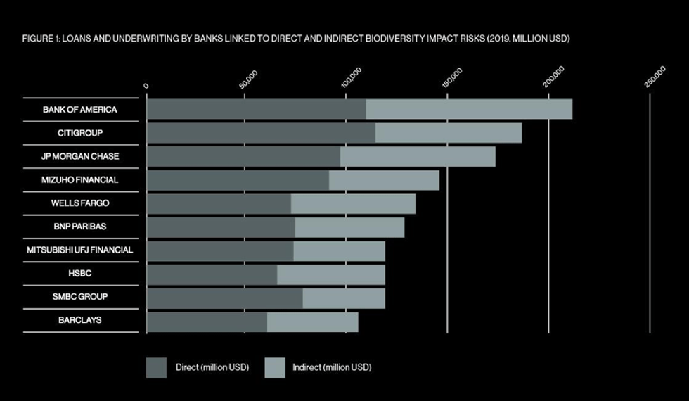 Moreover, the report notes that "none of the banks assessed had... sufficient systems in place to monitor or measure the impact of their loans on biodiversity loss, nor do they have comprehensive policies to halt it."