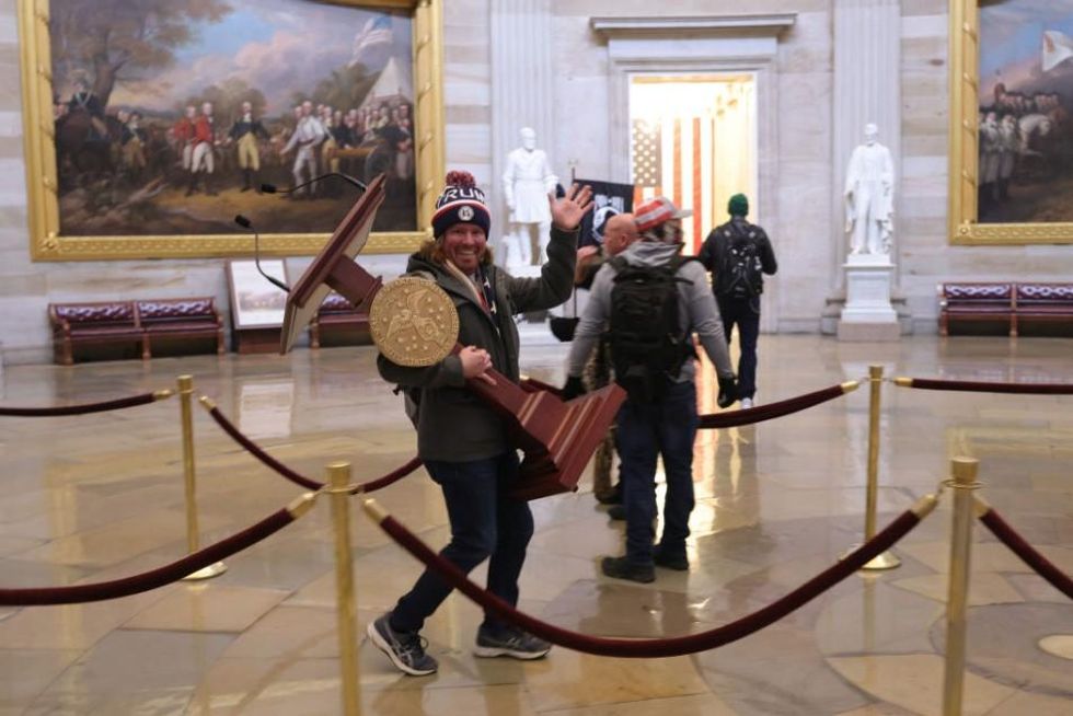 Photojournalists and social media users witnessing the events inside the U.S. Capitol building on Wednesday shared shocking pictures and video footage of the mob of fascist pro-Trump supporters who stormed the legislative offices shortly after an inflammatory speech delivered by President Donald Trump at a rally focused claiming that the results of the 2020 election--in which he was soundly defeated--are fraudulent.